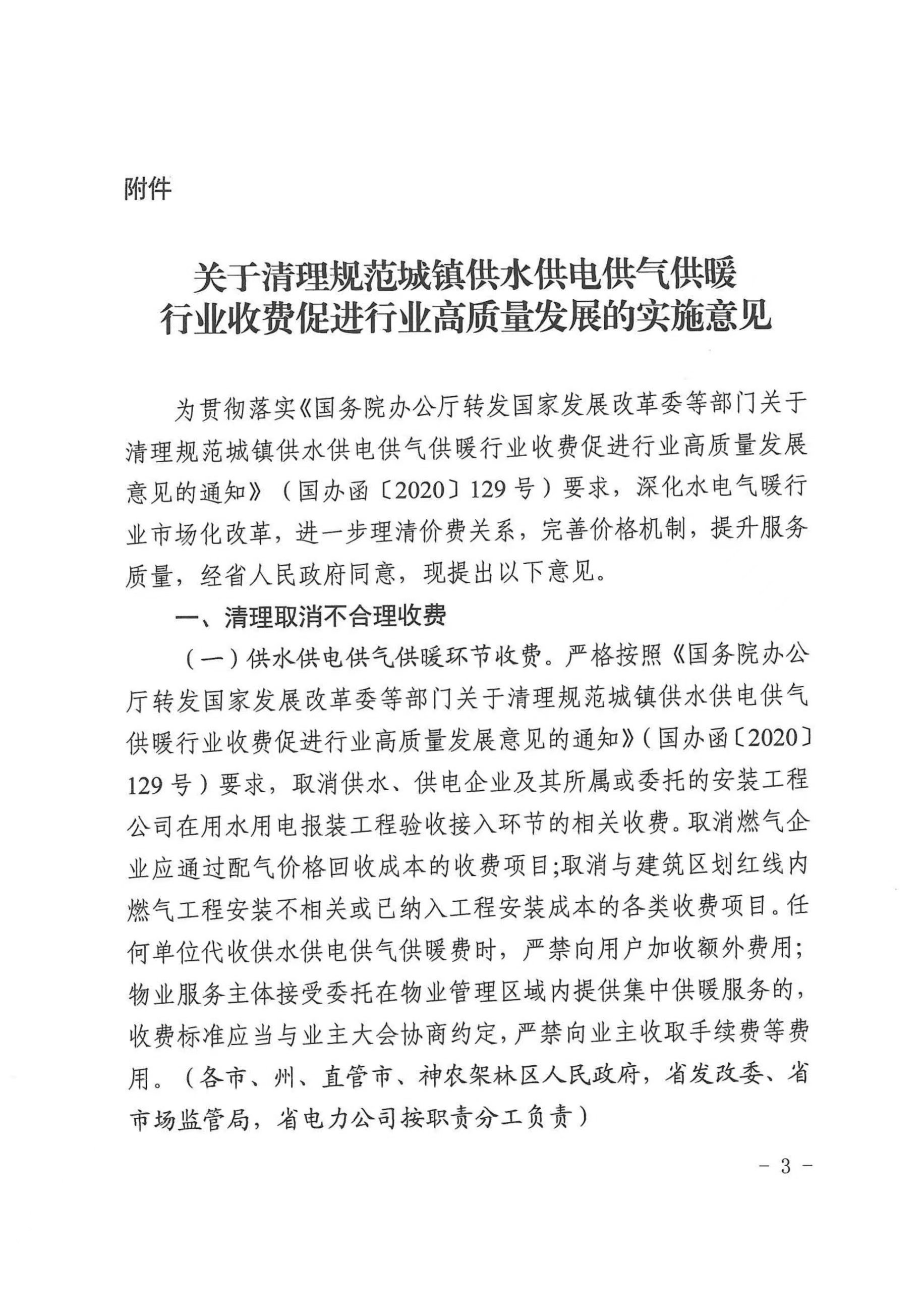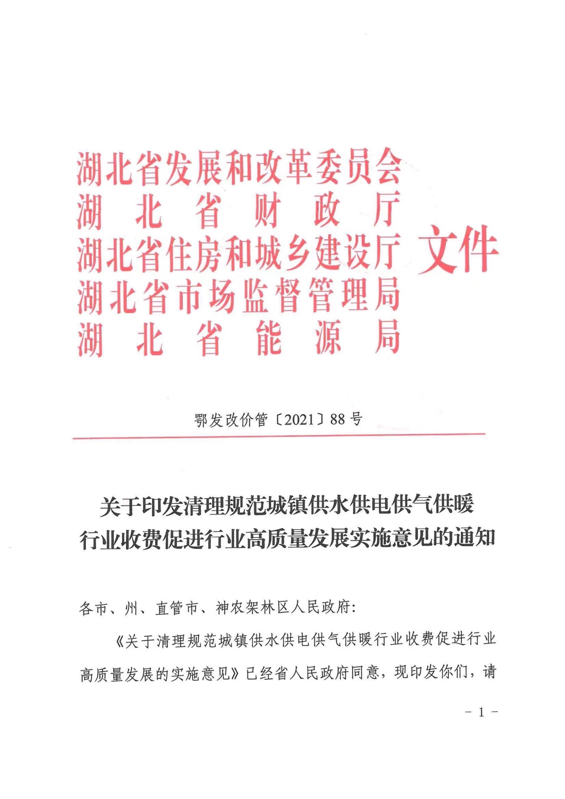 關(guān)于印發(fā)清理規(guī)范城鎮(zhèn)供水供電供氣供暖行業(yè)收費促進行業(yè)高質(zhì)量發(fā)展實施意見的通知